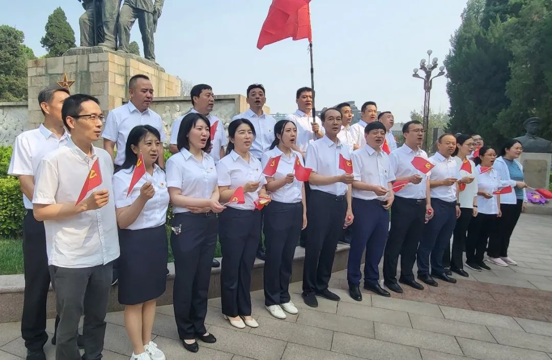 在革命烈士紀念碑前,全體黨員莊嚴地舉起右拳,在公司黨委副書記、監事長郄少杰帶領下,面對鮮紅的黨旗,再次莊嚴宣誓,“我志愿加入中國共產黨”鏗鏘恢宏的誓詞提醒我們每一名黨員在前進的道路上,時時檢視自我,不斷校正航向,想想精氣神有沒有減弱,查查警覺性有沒有降低,看看腳下路有沒有走歪……一字一句,神圣而豪邁。